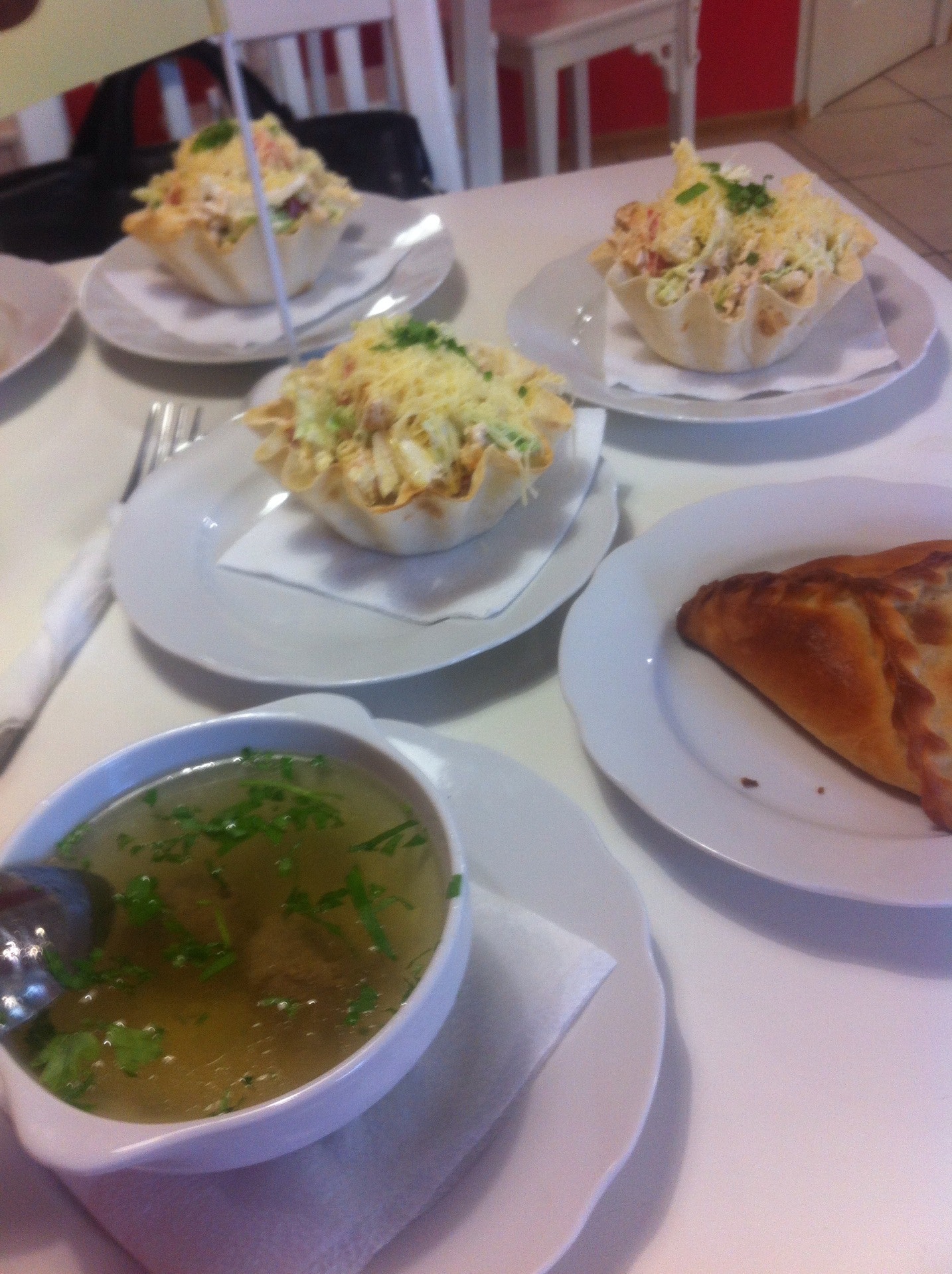 Вкусная закрытая пицца с курицей, буккены ок. Попали в воскресенье - никого, обычно в будни - студенты наводняют. Советую)