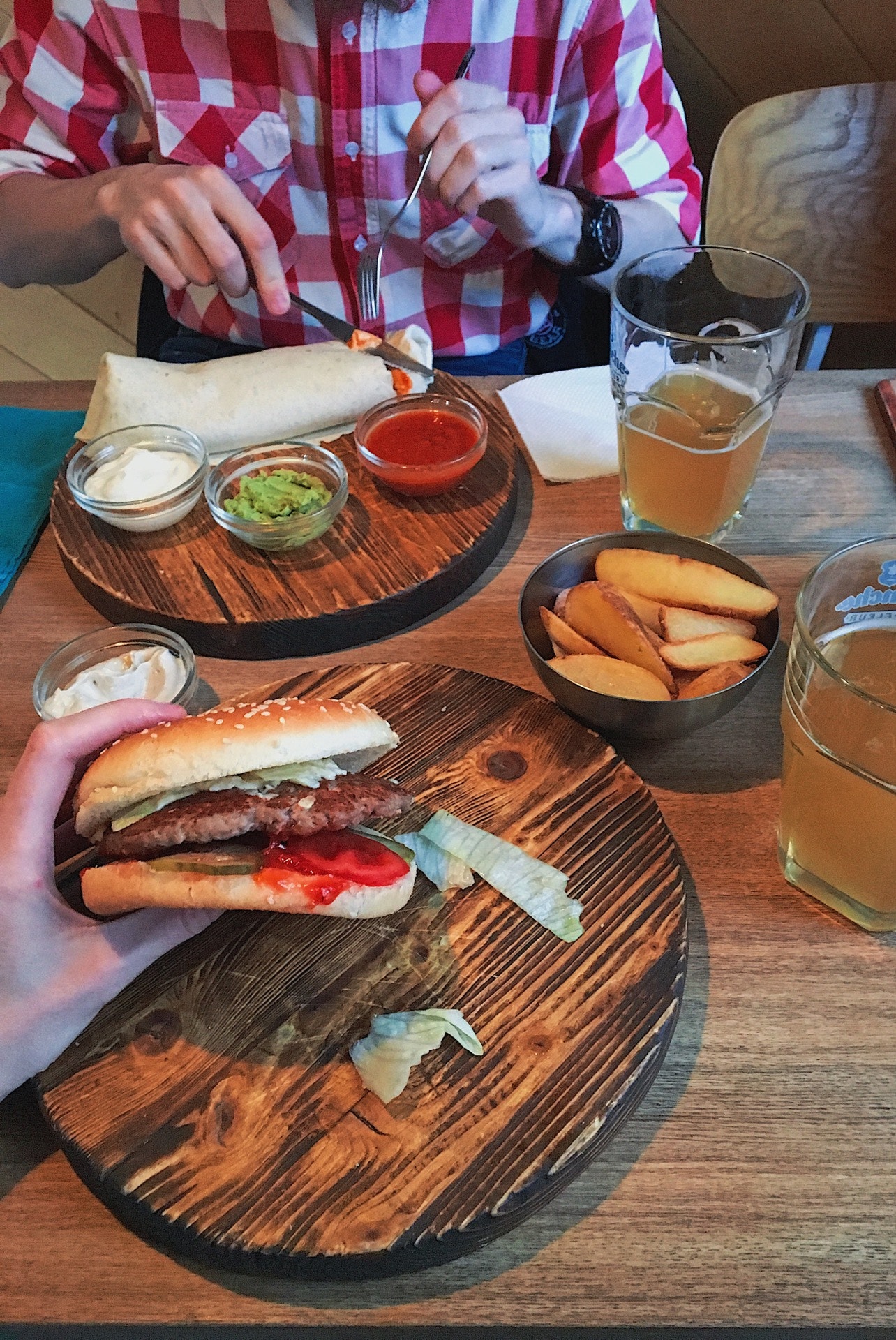 Хороший интерьер, уютно. Кухня на 4. В теплом салате с ростбифом ростбиф пересушен, но в целом вкусно.