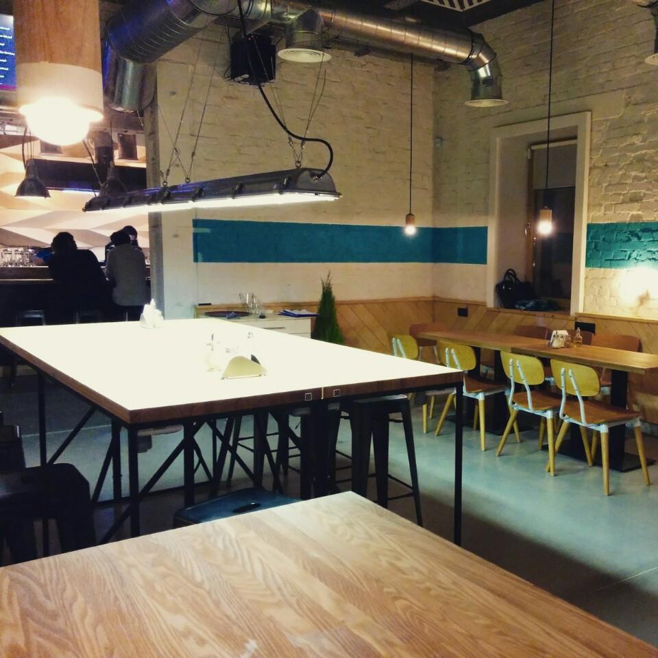 Интерьер в стиле лофт. Меню незамысловатое. Качество блюд на 3+. Супчики приятные, но паста абсолютно невкусная.