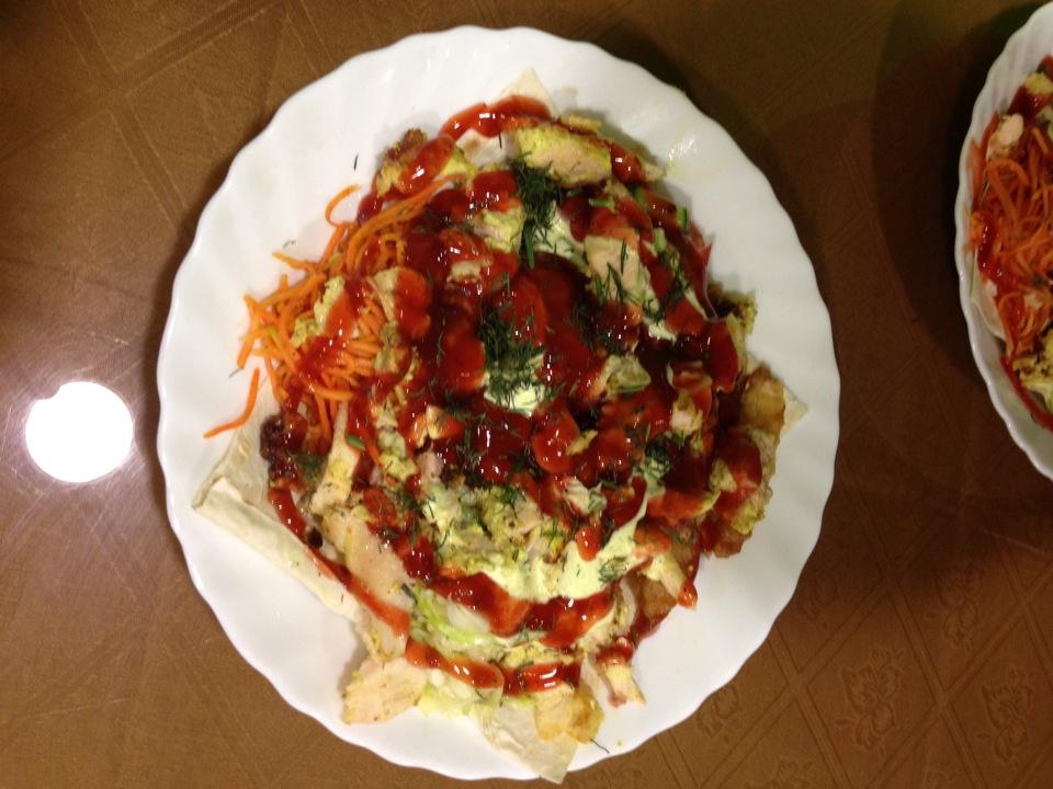 Очень вкусное мясо и лагман. Гигантская пахлава. Готовят практически мгновенно