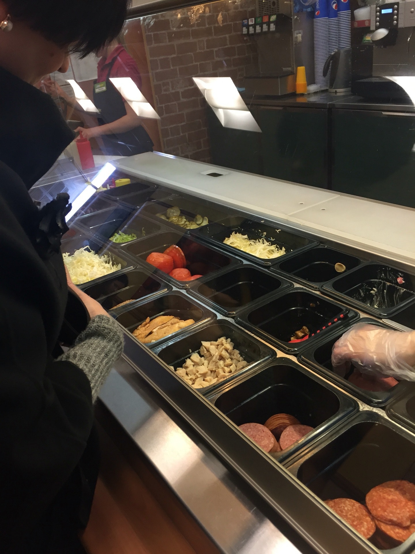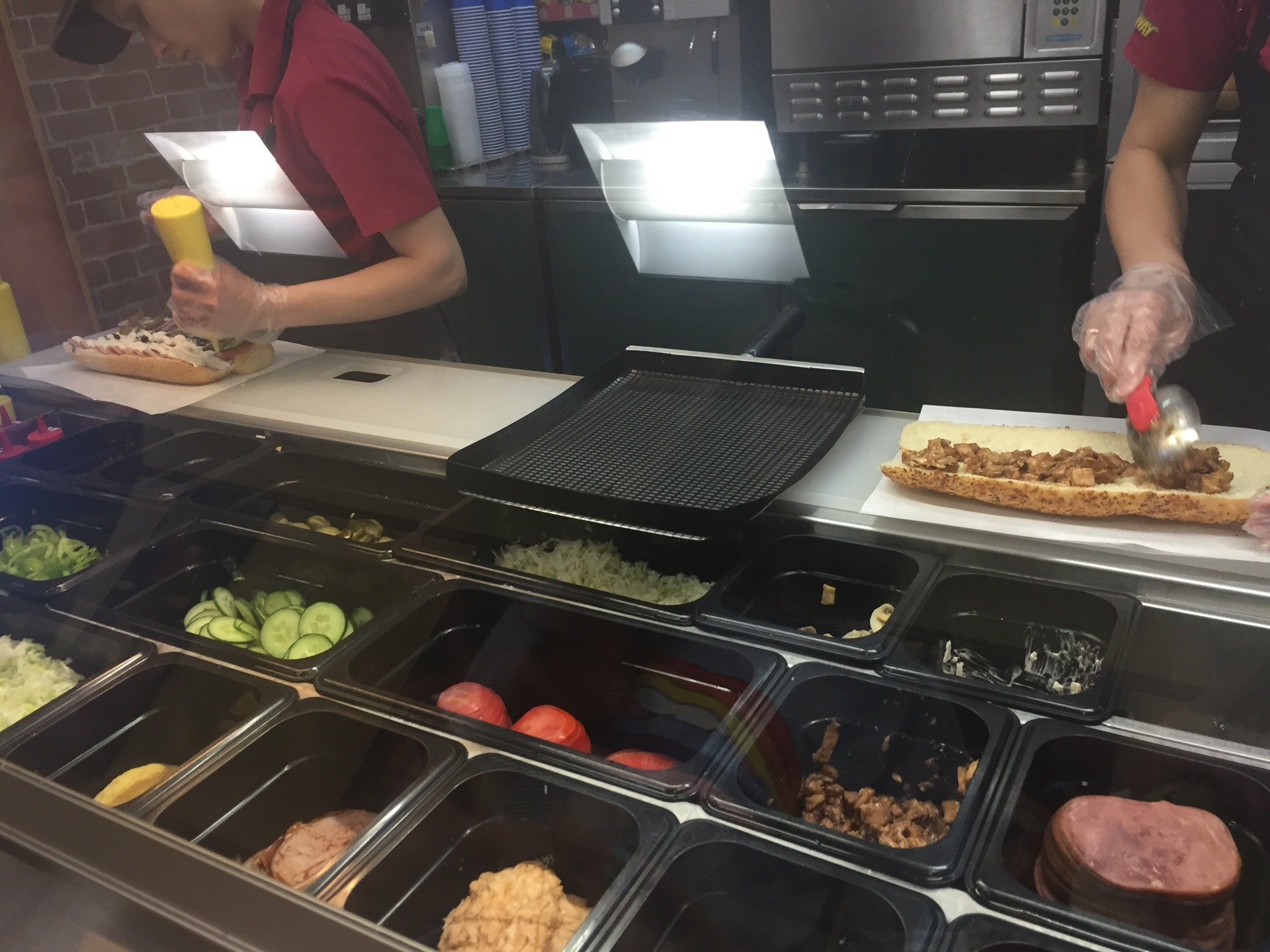 Некоторые классные сабы есть только в меню у стойки заказа, например "Стейк и сыр" или "Свинина барбекю".