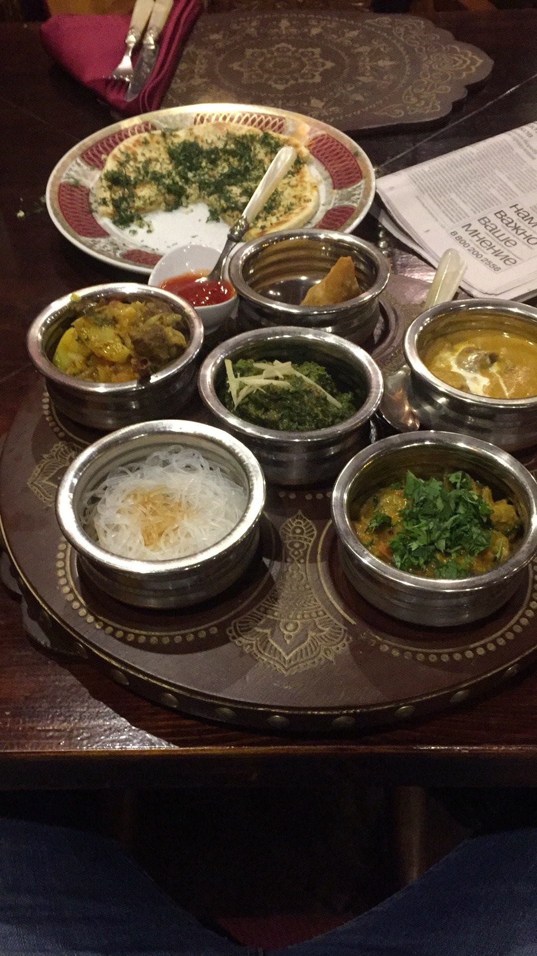 Великолепный интерьер, переносящий в другую реальность, потрясающая индийская кухня, замечательные сотрудники. Из десертов очень понравились миндальные полоски и сливочная помадка. Must try! :)