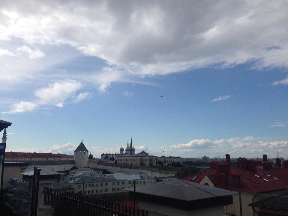 Очень красивый вид на Кремль, на реку и город. Когда ветрено или прохладно, раздают пледы и куртки. Космическая кесадилья с курицей, а вокруг - ягодно-пахнущие кальяны. Нравится!!!...
